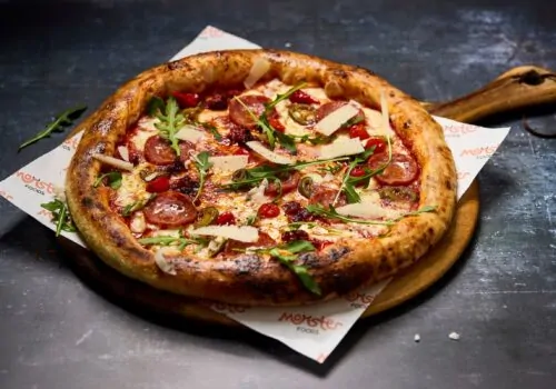 At Monster Foods, you can have your pizza truck set up to suit your event. We can set up a buffet style and your guests can enjoy a flow of freshly cooked slices of pizzas to keep them fed and happy! Or your guests can choose their own whole pizza and tuck in! In our oven, pizzas only take 90 seconds to cook, so everyone should have some pizza in their hands in no time!